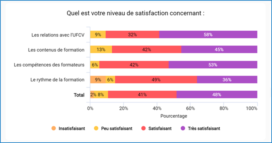 L’échantillonnage porte sur les actions qui se sont terminées en 2025. Ces actions ont accueilli 62 apprenants, 53 ont répondu à notre enquête de satisfaction, soit 85%.